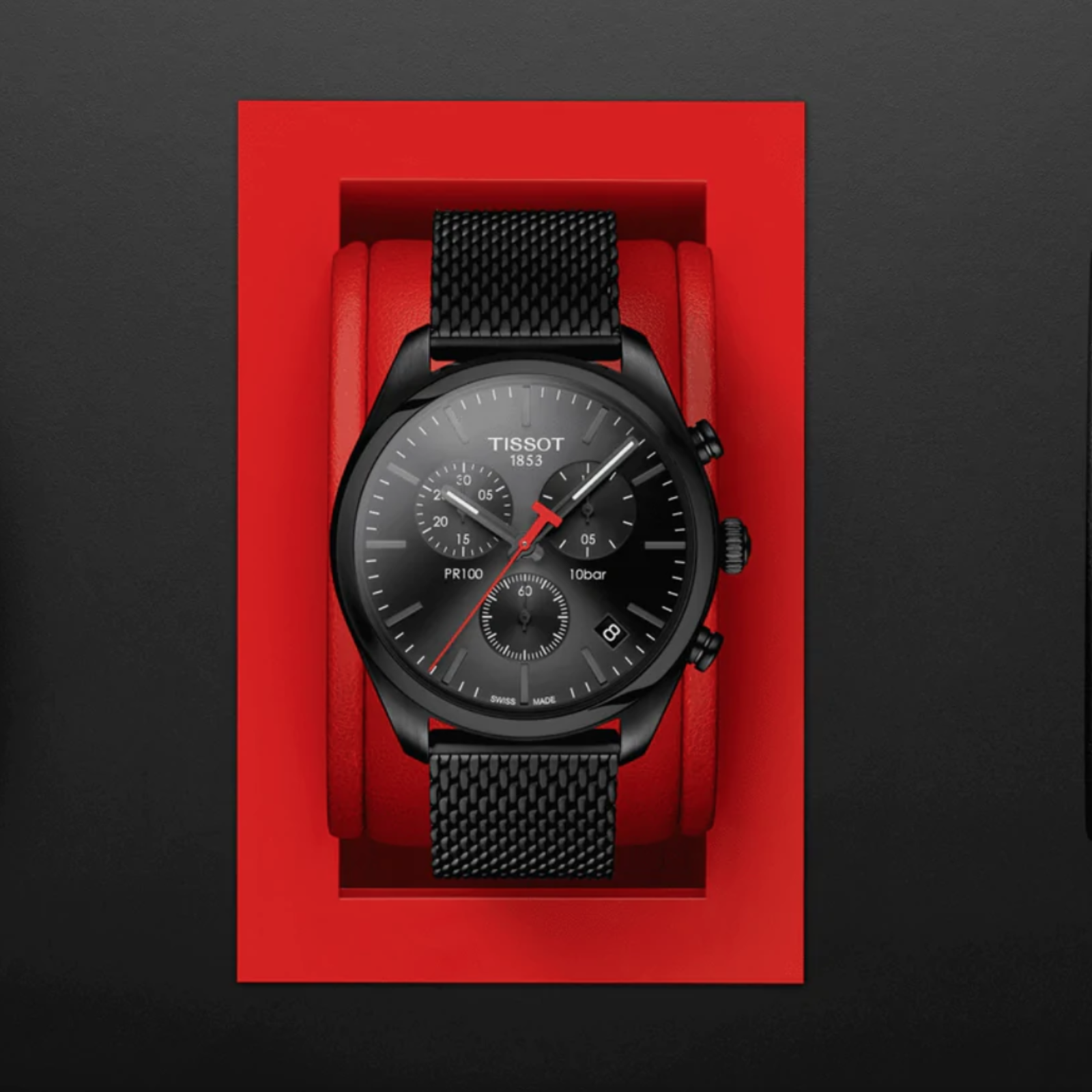 Tissot PR 100 Chronographe Homme – Élégance noire, précision suisse