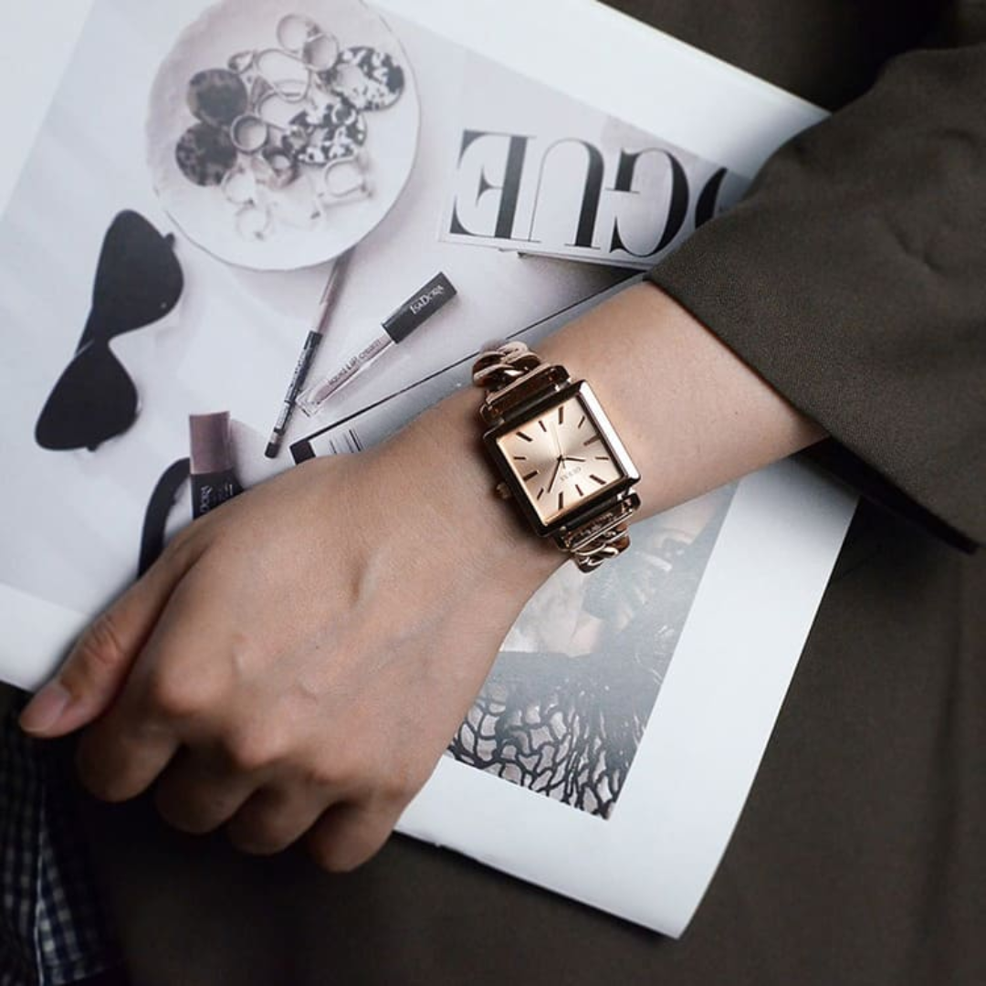 La Guess Vanity W1029L3 séduit par son boîtier carré minimaliste et son cadran ton sur ton rose doré. Son bracelet en maillons chaîne poli apporte une note moderne et féminine, parfaite pour rehausser toutes vos tenues. Un bijou horloger qui conjugue douceur et raffinement.